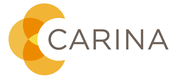 Carina logo, intersecting half circles in shades of orange and yellow.