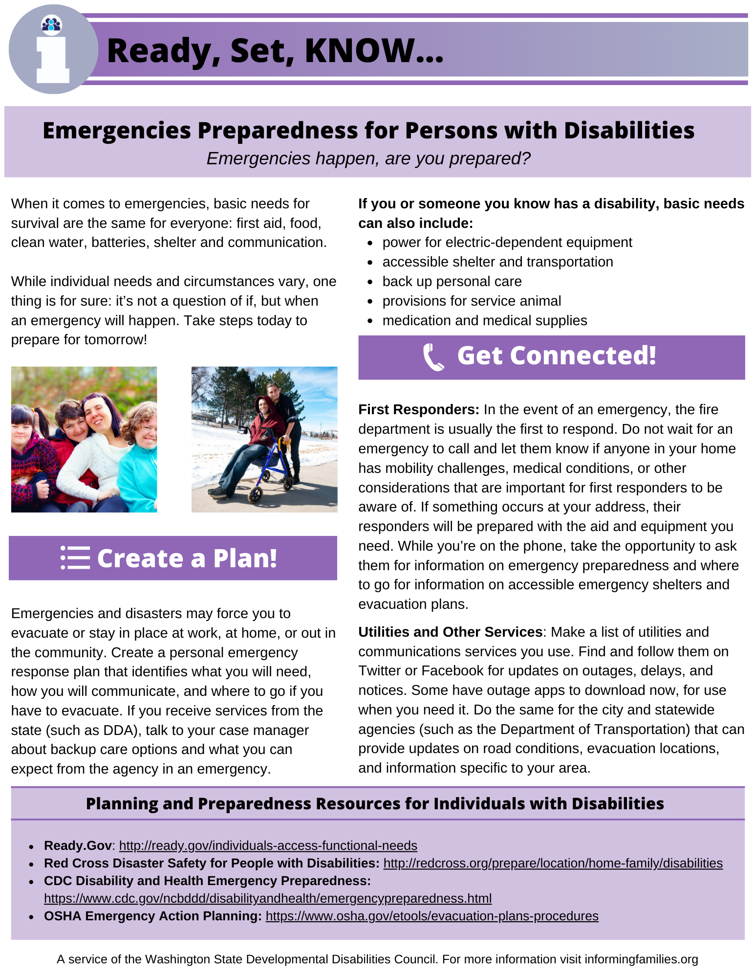 - CDC Disability and Health Emergency Preparedness: https://www.cdc.gov/ncbddd/disabilityandhealth/emergencypreparedness.html