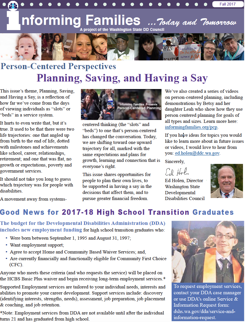 front page of Informing Families fall newsletterEmployment for High School Graduates