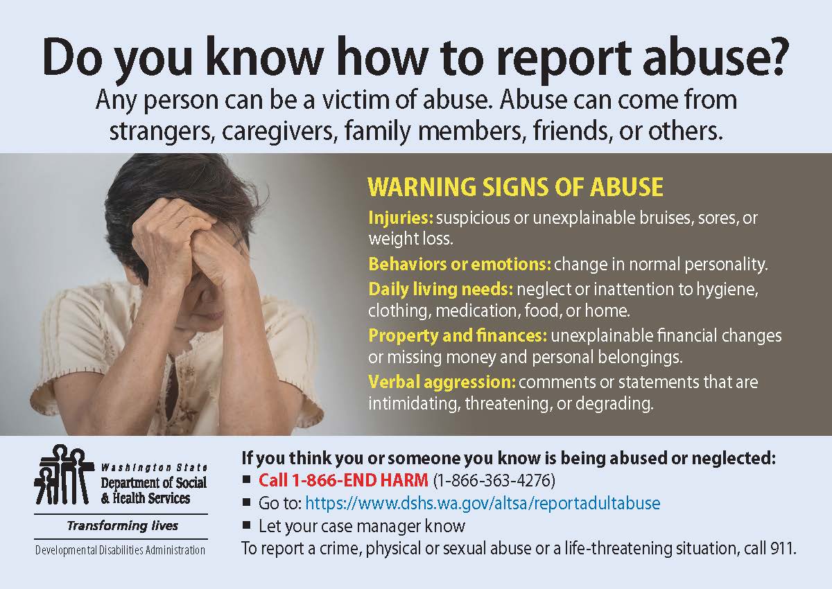 For more information, reporting online, and contact information please visit https://www.dshs.wa.gov/altsa/reportadultabuse