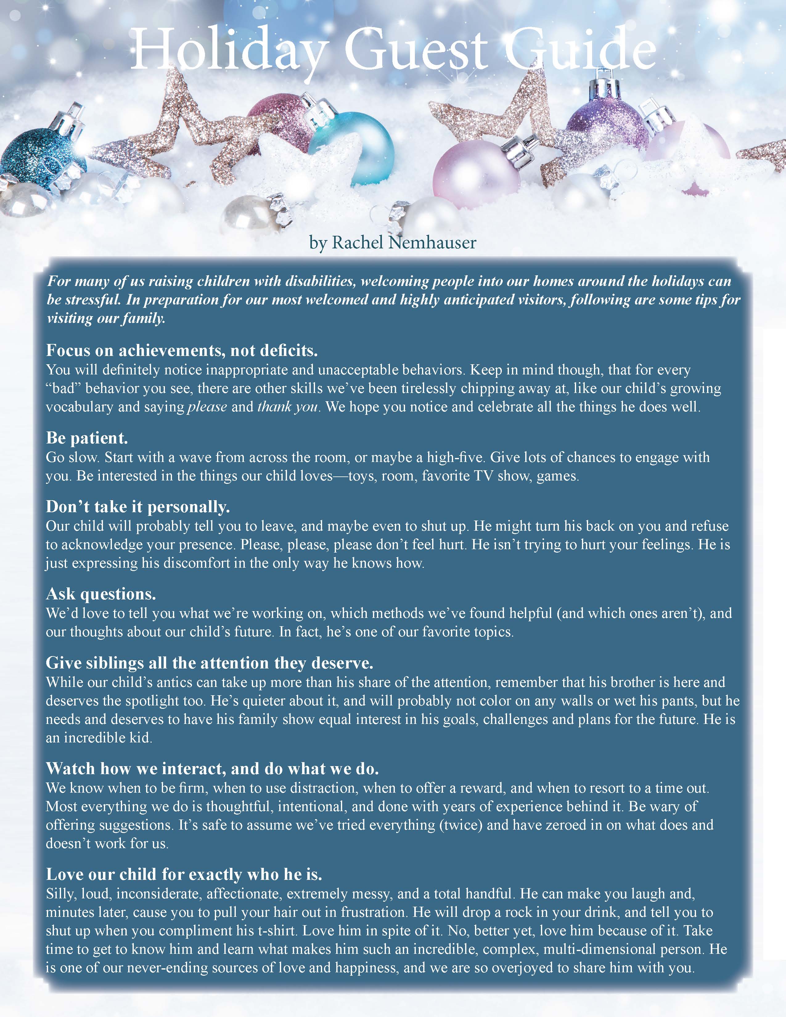 For many of us raising children with disabilities, welcoming people into our homes around the holidays can be stressful. In preparation for our most welcomed and highly anticipated visitors, the following are some tips for visiting our family.