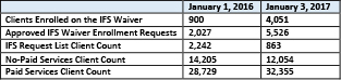 It’s been a huge undertaking. In what has been a relatively short time, DDA designed a new waiver program, obtained approval from the federal government, transitioned about 1,500 state-only IFS clients to the new program, ramped up new enrollments for more than 2,000 NPS clients and staying on pace to meet the target goal of 4,000 new enrollments by the end of June 2017.