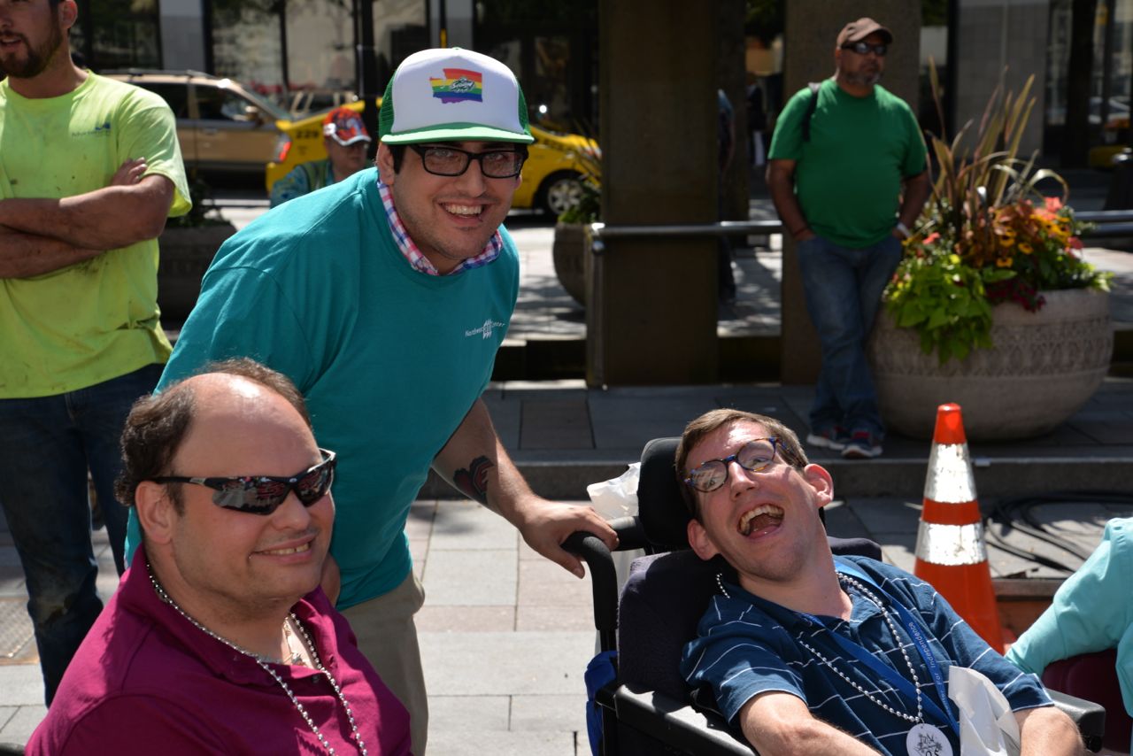 Noah (center) at ADA rally with colleagues Mike Rogers (left) and Shawn Latham (right). July 2015.