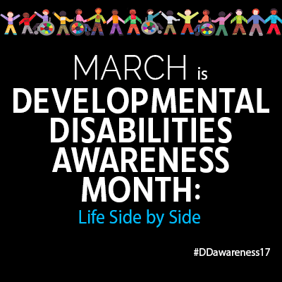 Share pictures, stories and videos on Facebook and Twitter, with the hashtag #DDawareness17. This makes it easy for everyone throughout the nation to find and share your posts, as well as catalog all the wonderful ways people with I/DD are making our communities great.