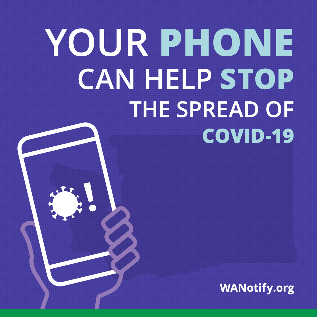 Turn on your smart phone’s WA Notify Exposure Notifications to reduce the risk of exposure to your family in the event you or members of your household come into contact with someone who later tests positive for COVID. If you have caregivers who come into your home, consider asking them to turn on their exposure notifications (find instructions at WA Notify).