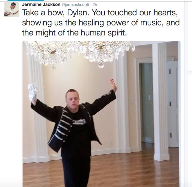 See Jermaine Jackson’s tweets about Dylan at https://twitter.com/jermjackson5
